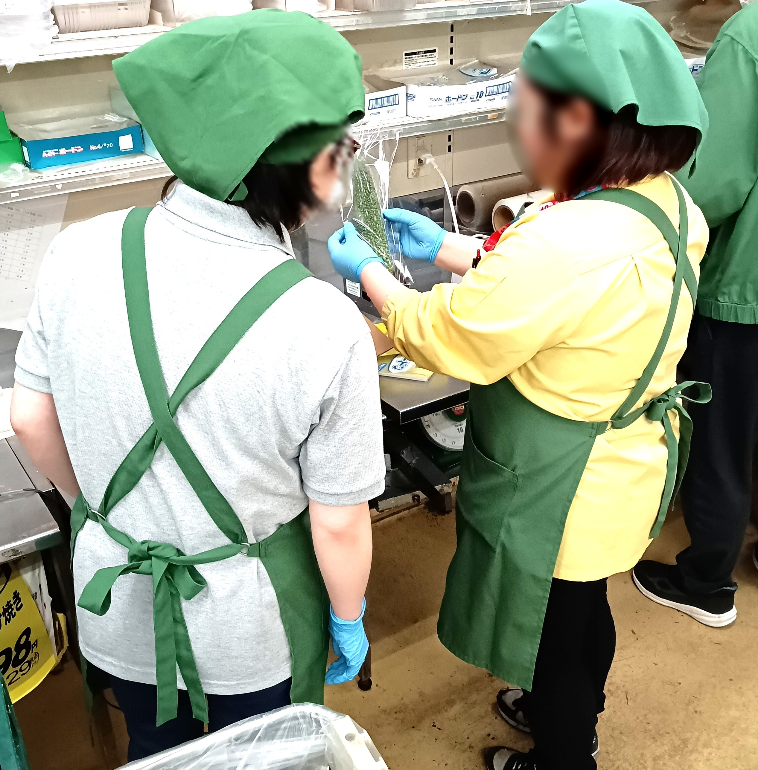 「コープなかのくち店」でアルバイト体験 概要 日時:6/12(木)、6/13(金)、6/14(土)、6/17(火)、6/18(水) 5日間 場所:コープなかのくち店 青果部門のアルバイト体験を行いました。 オクラを袋に詰めている所です。 ゴーヤの袋詰めを教わっている所です。