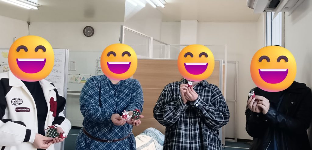 - クラフトバントを使って、サンタを製作しました。参加者同士の交流を深めながら、それぞれのペースで作成に取り組みました。
